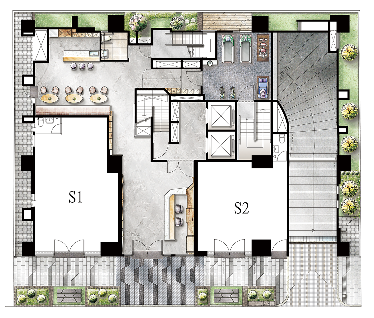 典雅的大廳,讓您回家就像住進精品飯店,每一次歸返都是一場被禮遇的體驗。 寧謐交誼廳規劃,無論是姐妹聚會或是午後品茗,都能在舒適氛圍中享受愜意時光。 健身房完整設備,在家也能運動燃脂,維持好身材!